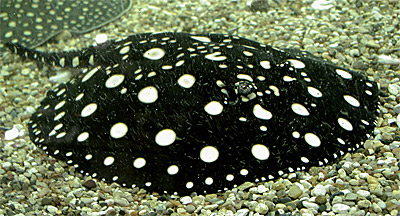 Размер: В неволе скат леопольди достигает внушительных размеров — диаметр диска может составлять до 50-60 см, а в природе вырастает и до метра.